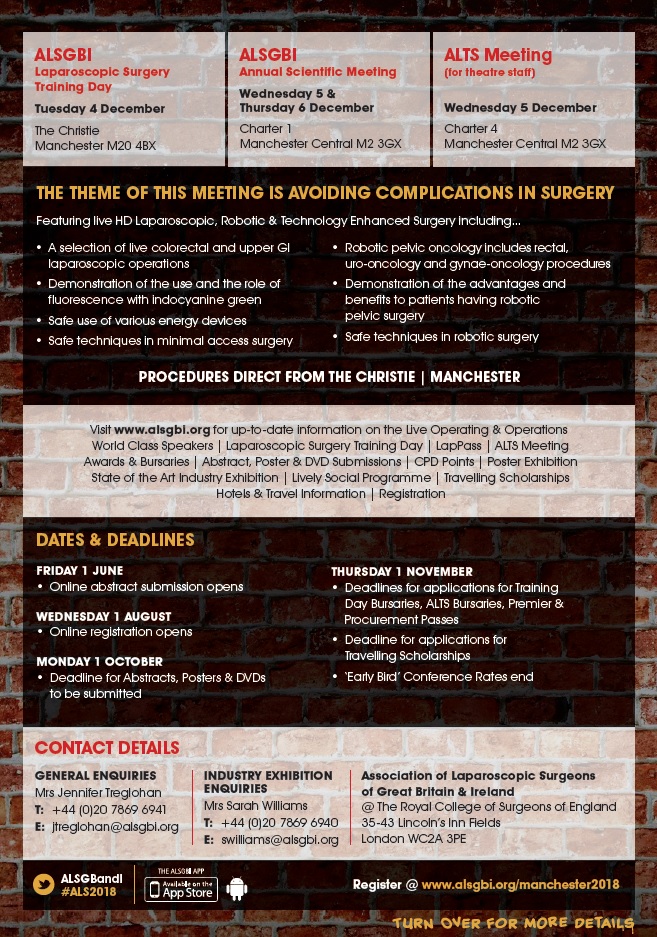 Jun122018UncategorizedDownload Flyer here Category: UncategorizedBy adminamanchanaJune 12, 2018Leave a comment Author: adminamanchana Post navigationPreviousPrevious post:6TH ADVANCED LAPAROSCOPIC SKILLS WORKSHOP JUNE 9TH, 2018NextNext post:Submit an AbstractRelated postsGeneral Surgery ST3 online interview course – 2nd February to 16th March 2025August 3, 2024The National Hiatal Surgery Register is FREE for ALSGBI Members to useSeptember 30, 2022The RSM COVID – 19 Learning HubMay 14, 2021Laparoscopy in The Covid-19 Environment – ALSGBI Position StatementApril 22, 2020Development of Core Outcome Set (COS) for gallstone disease – 24th July 2019April 25, 2019Tan Arulampalam appointed as Visiting Professor at Anglia Ruskin UniversityApril 9, 2019