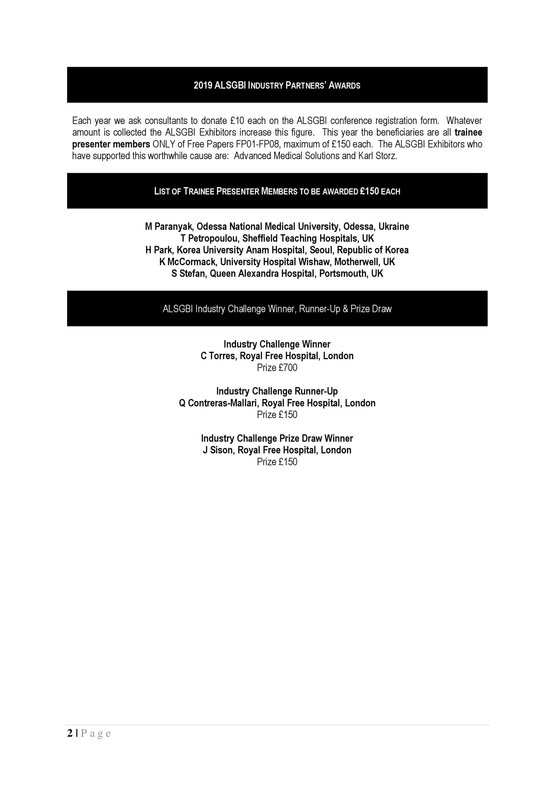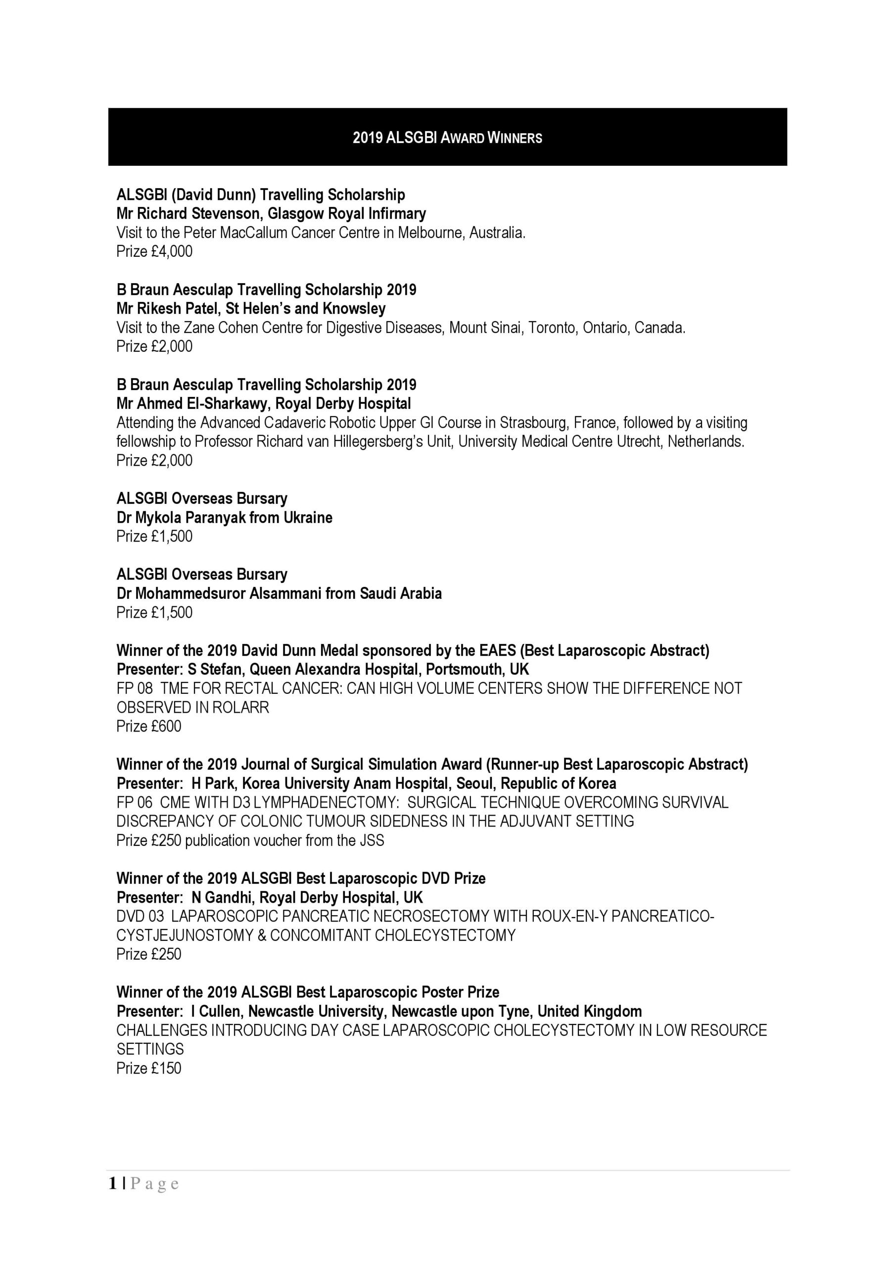 Many congratulations to all the successful entrants ! Category: NewsBy ALSGBI AdminNovember 21, 2019Leave a comment Author: ALSGBI Admin Post navigationPreviousPrevious post:Advanced Gynaecological Laparoscopy – Wednesday 20th – Friday 22nd NovemberNextNext post:Training & Assessment in Laparoscopic Surgery Webinar – 28th January 2020 at 20:00 GMTRelated postsRoboPass® Assessment Programme – May 2026February 18, 20262026 Research Fellowship application window now openFebruary 5, 20262026 Travelling Scholarship application window now openFebruary 5, 2026Help Madina in Sierra LeoneJanuary 25, 2026Travelling Scholarship 2025 – application window open until 30th September 2025September 12, 2025Research Fellowship 2025 – application window open until 30th September 2025September 12, 2025