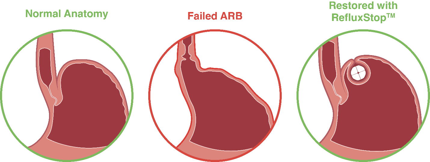 RefluxStopTM restores and maintains the position of the body’s natural Anti-Reflux Barrier (ARB) components, allowing it to function normally. Click here to read American Foregut Society’s whitepaper on the Anti-reflux Barrier.