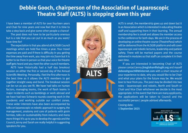 ALTS Chair position vacancy – application window is now OPEN NewsBy ALSGBI AdminApril 7, 2025Leave a comment