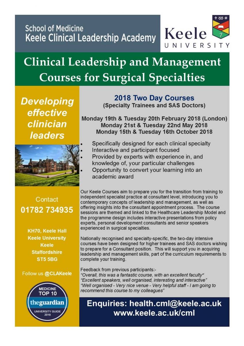 | Methods of teaching | Practical, small group sessions in the skills laboratory, live operative coaching lessons and discussions from the core of the course. You will be expected to work in pairs or small groups in both simulated and realistic settings. You will also be offered the chance to demonstrate your coaching skills during the live operative sessions on the second day. |