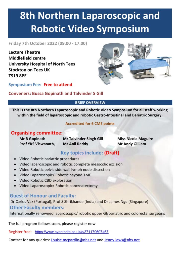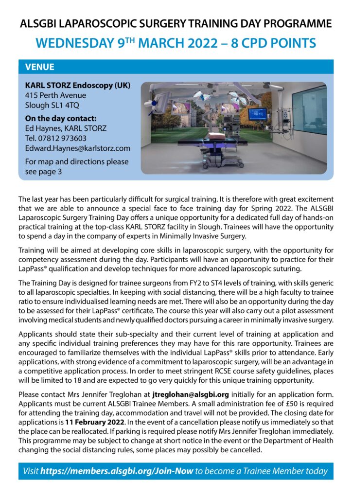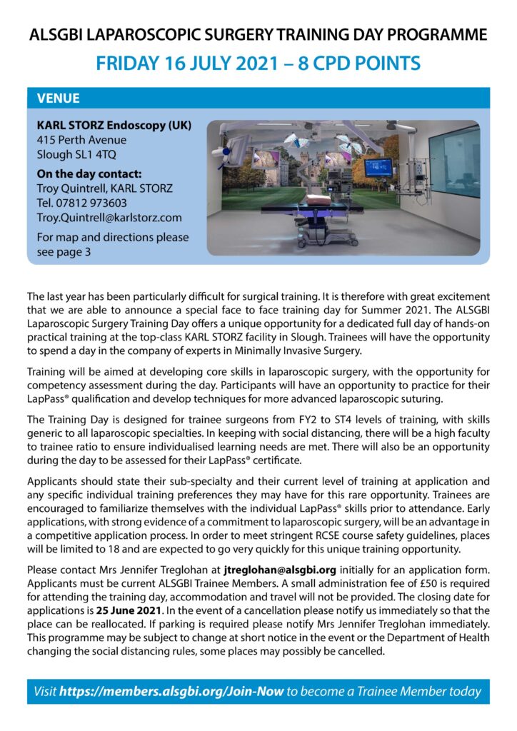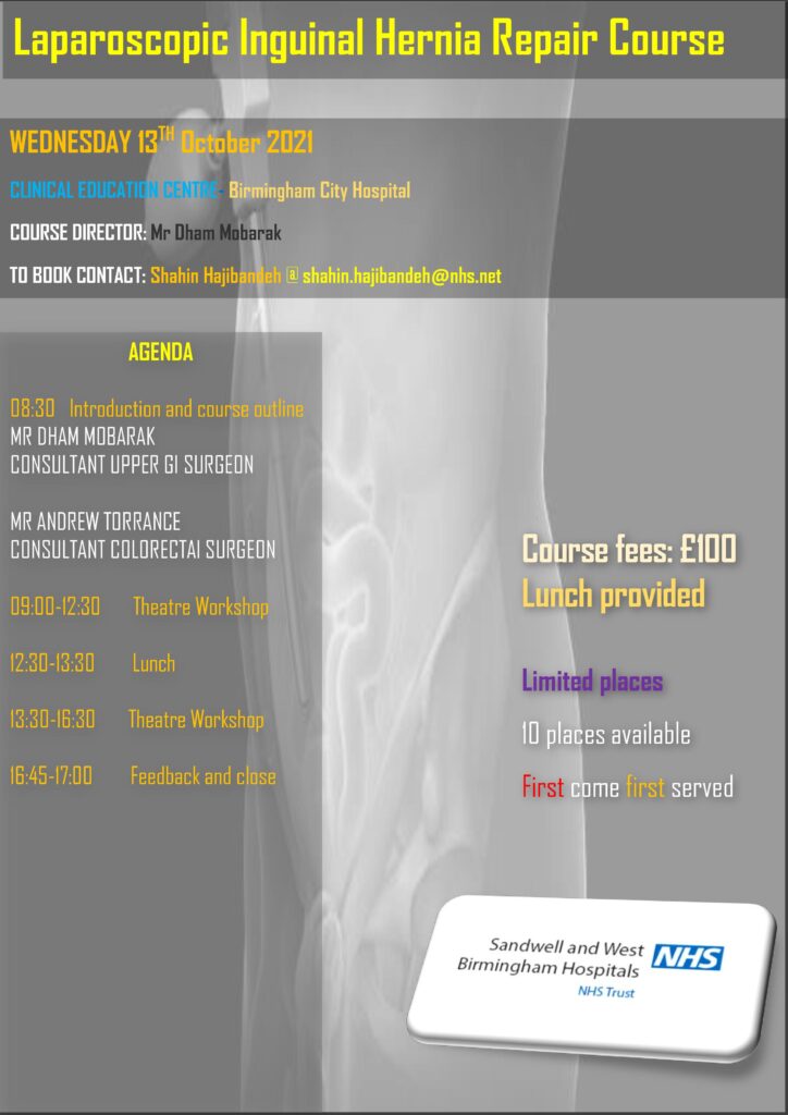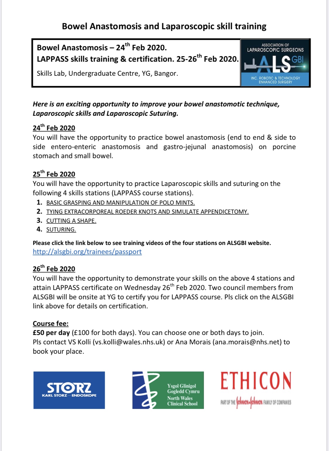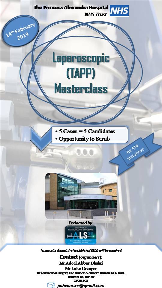 Please find attached the Programme and application form for the forthcoming Advanced Laparoscopic skills workshop on 9th June 2018. As ever, the workshop is FREE to attend (there is a nominal “admin fee”).