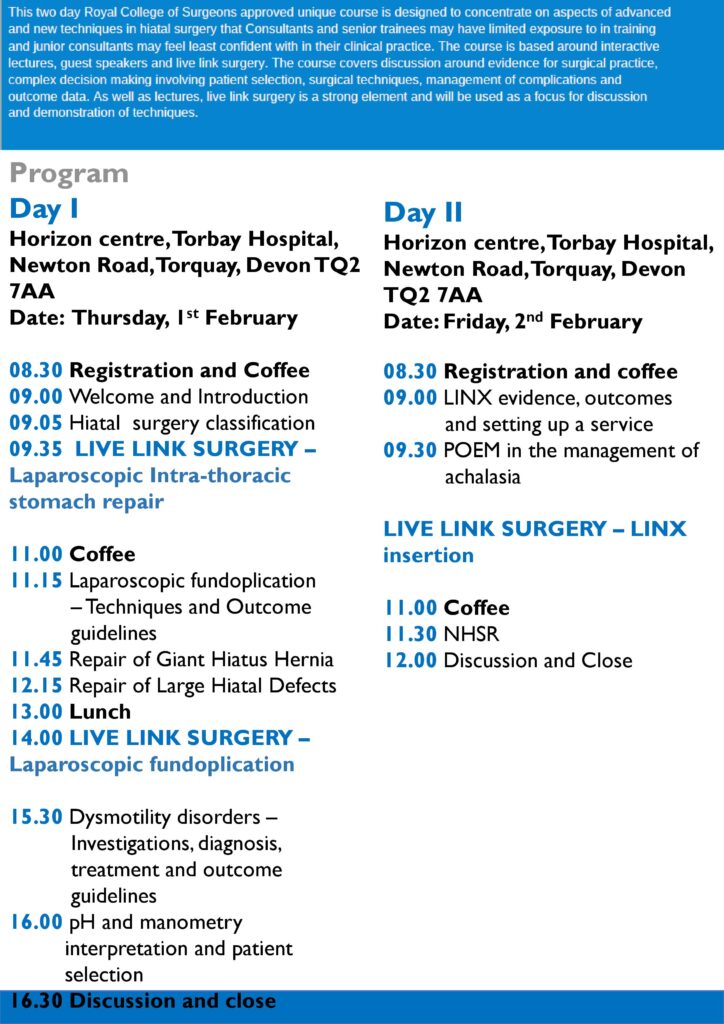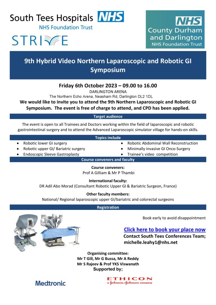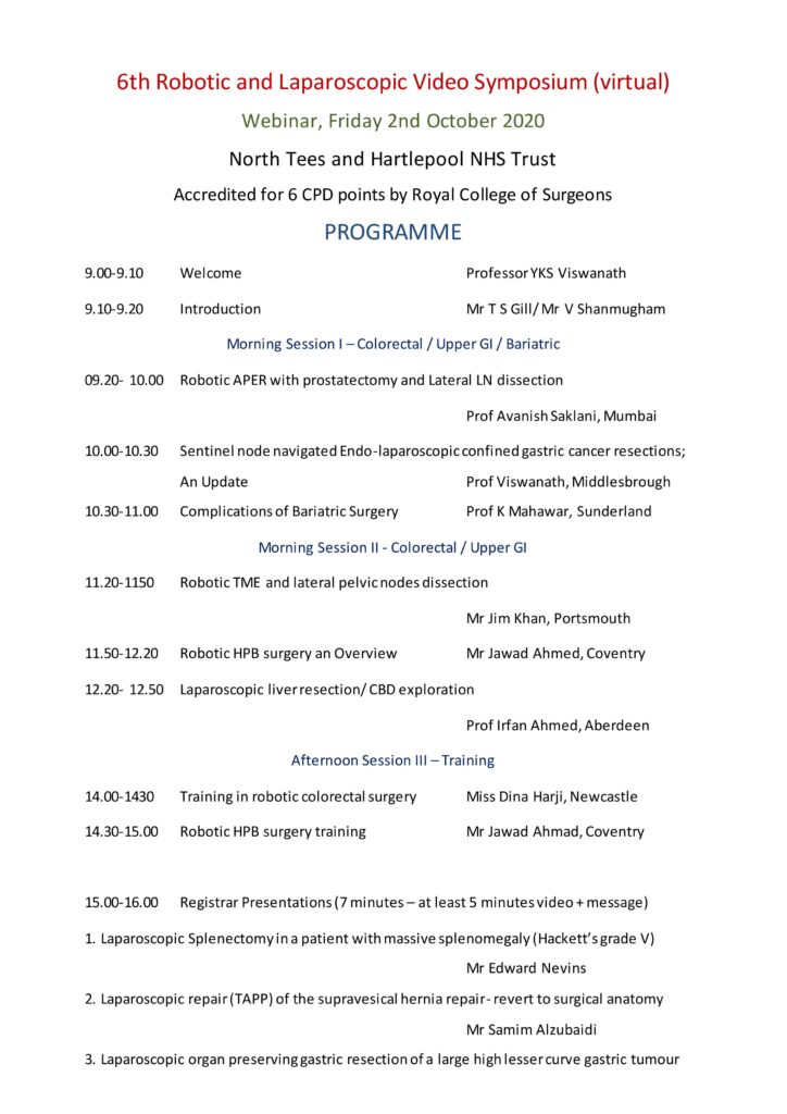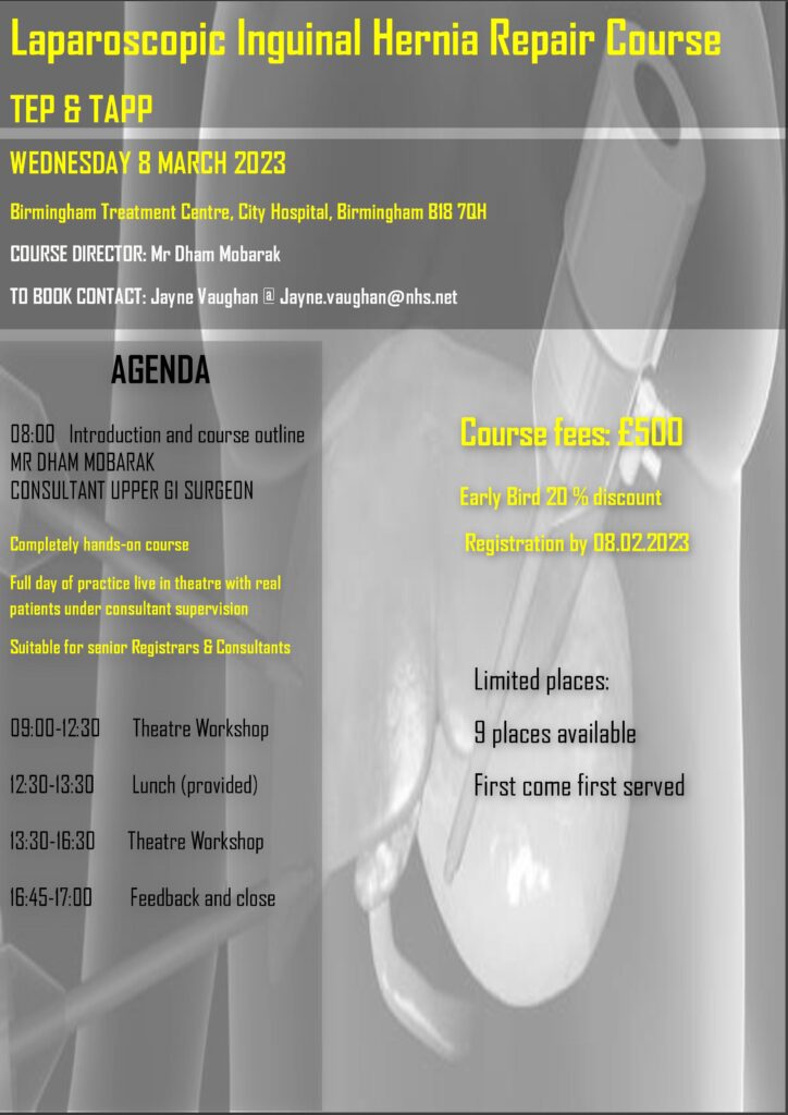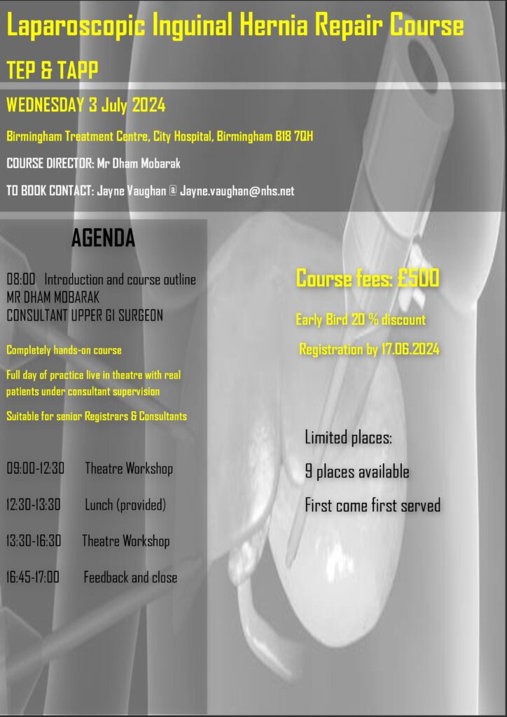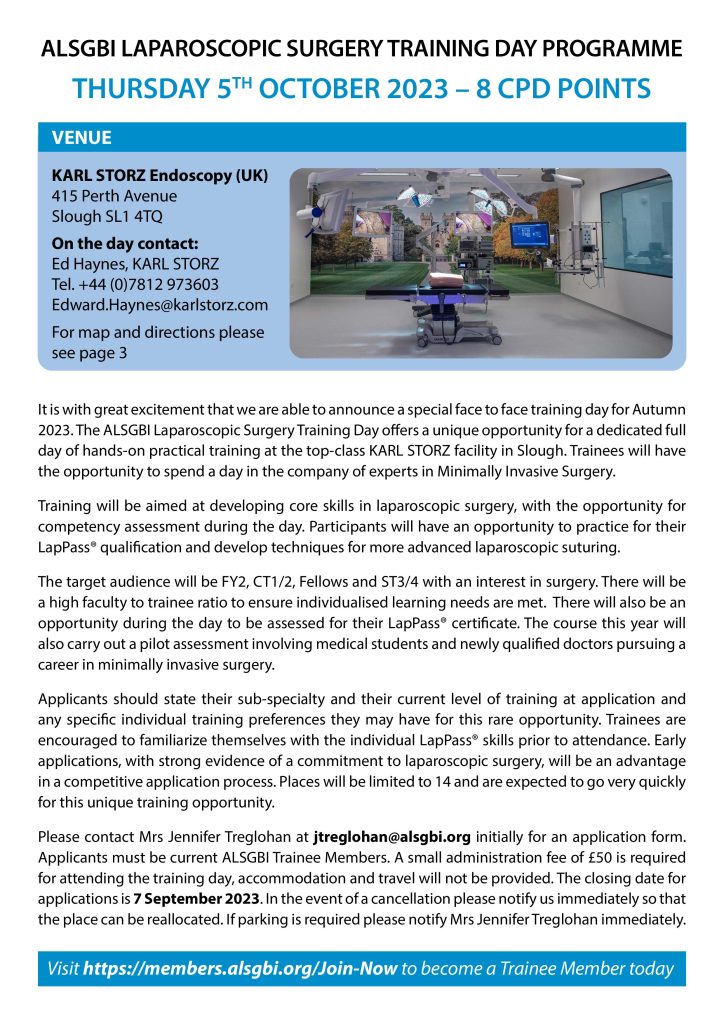 Please find attached the Programme and application form for the forthcoming Advanced Laparoscopic skills workshop on 9th June 2018. As ever, the workshop is FREE to attend (there is a nominal “admin fee”).