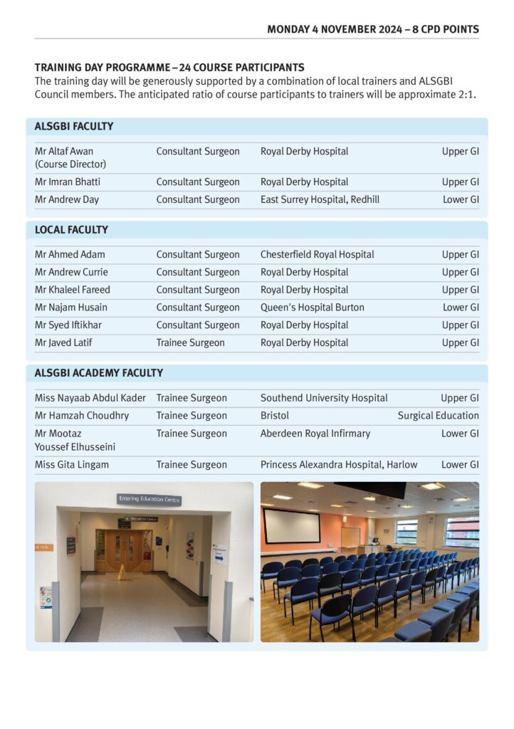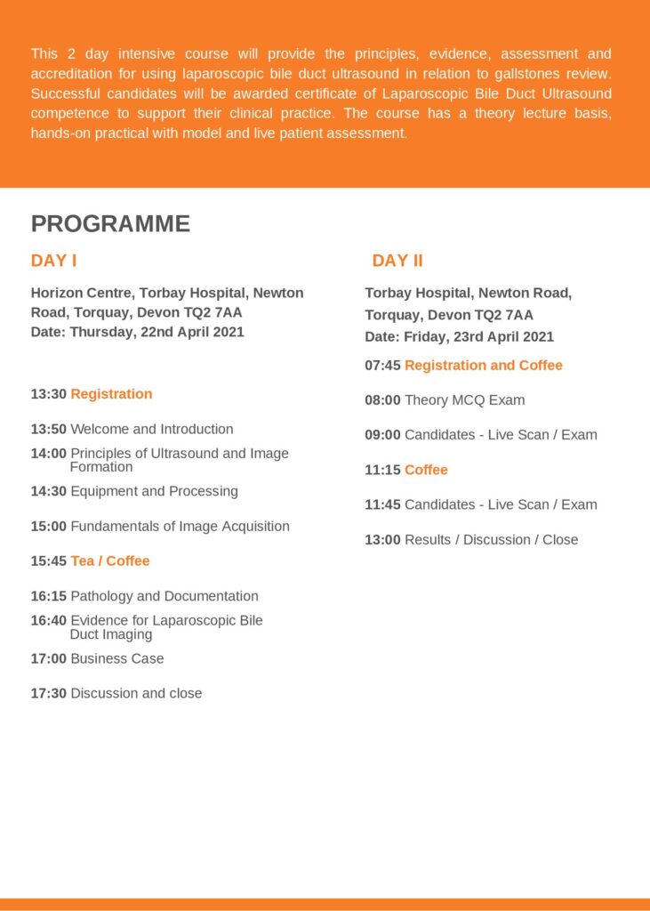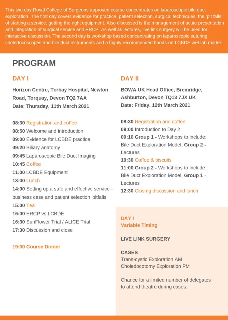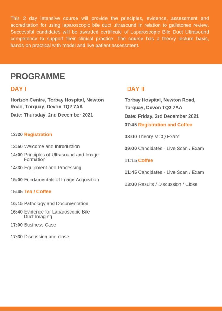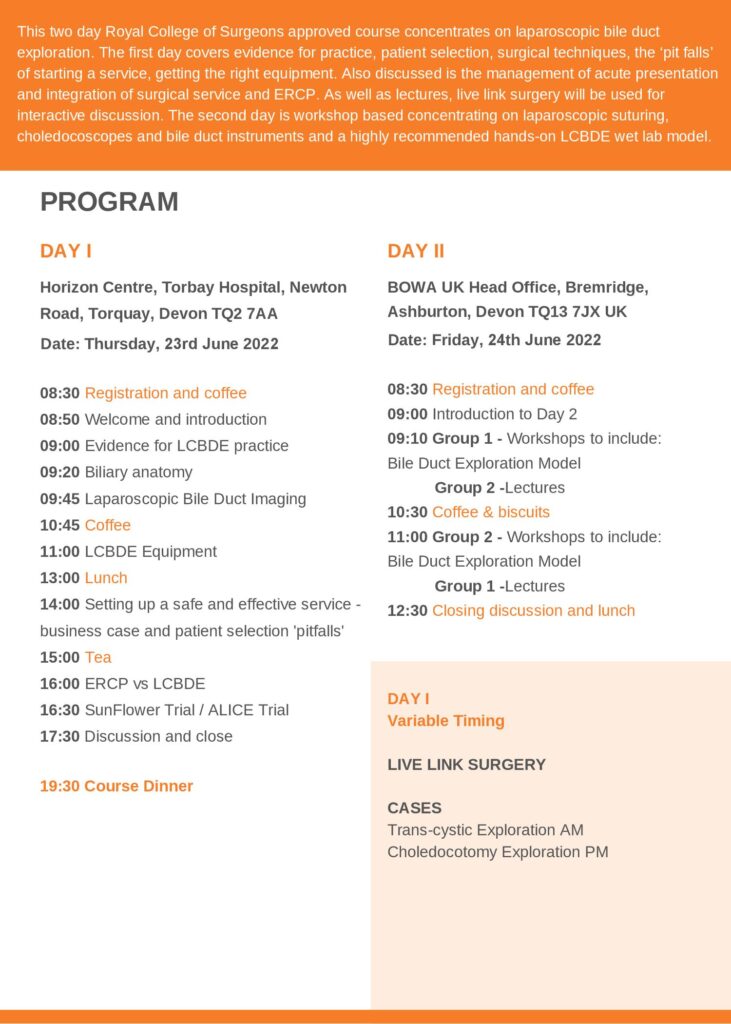 | Target delegates | Maximum 8 participants. Consultant surgeons and senior trainees who have mastered the skills of routine and emergency laparoscopic cholecystectomy and may already have experience with intra-operative cholangiography or bile duct exploration |