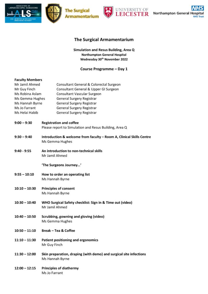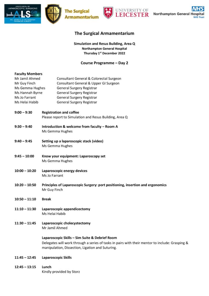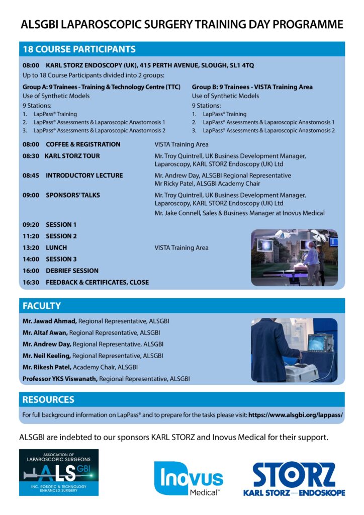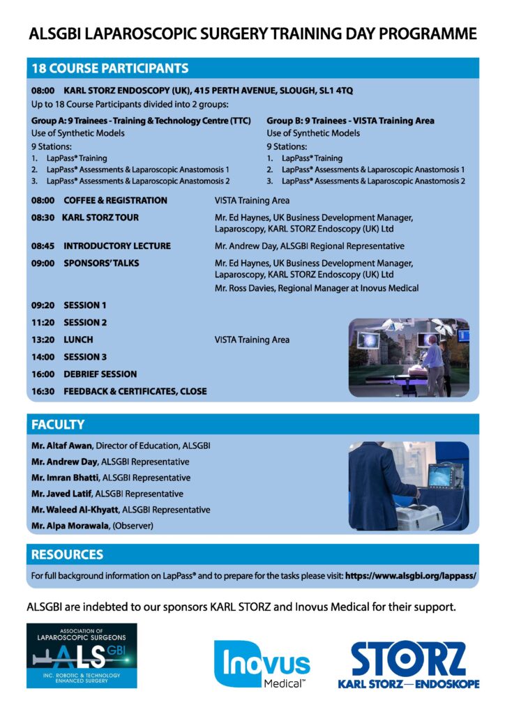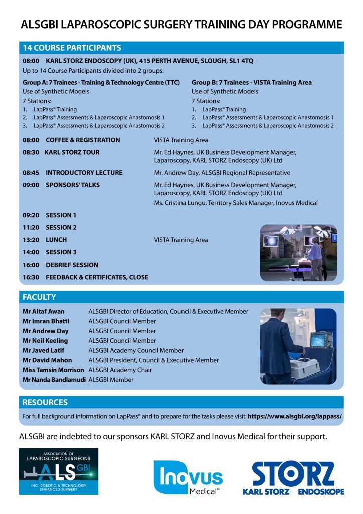 | Faculty and faculty/ participant ratios | Upper GI, colorectal & urology consultant laparoscopic surgeons. Ratio of 1 faculty to 4 participants |