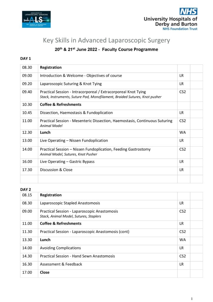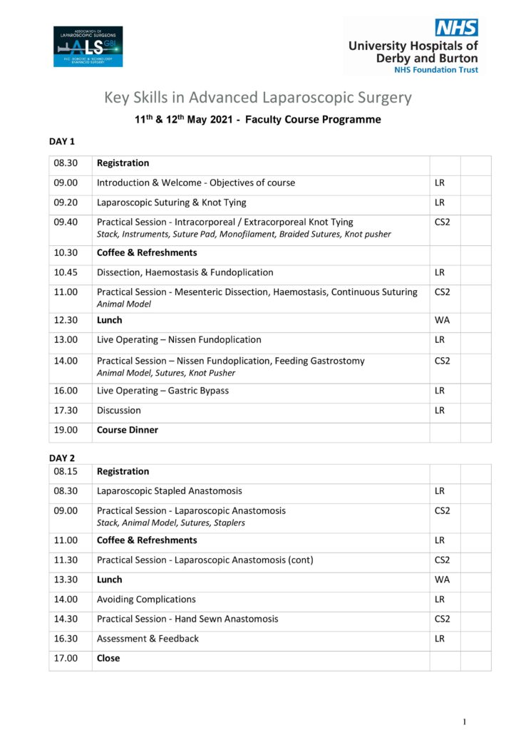 | Title of Course | Key Skills in Advanced Laparoscopic Surgery |