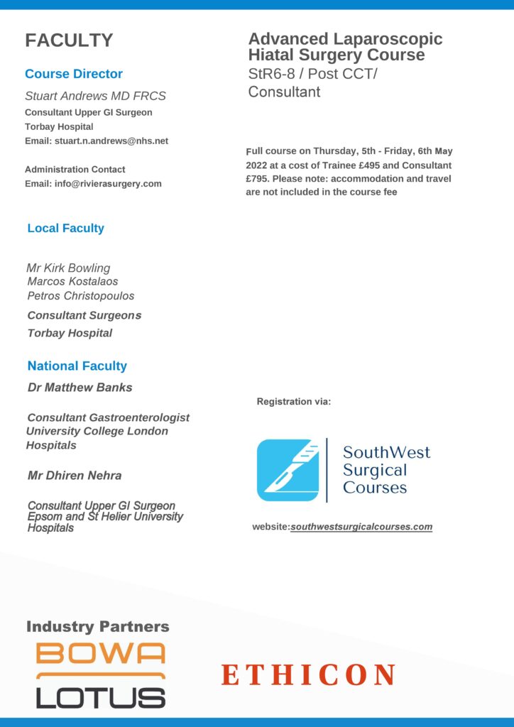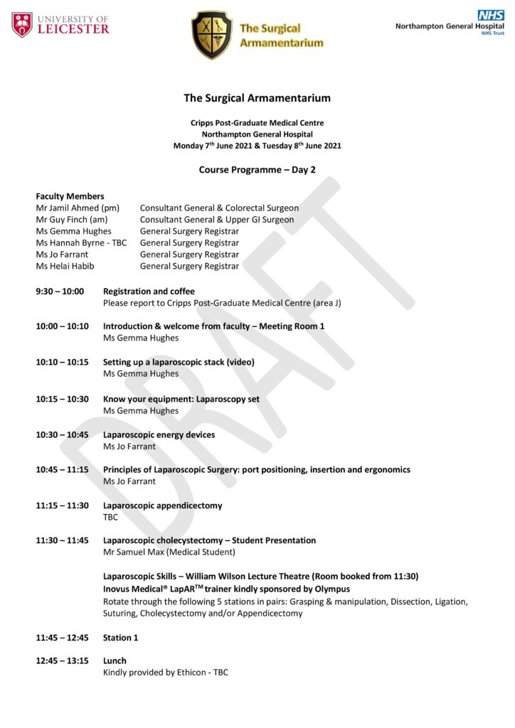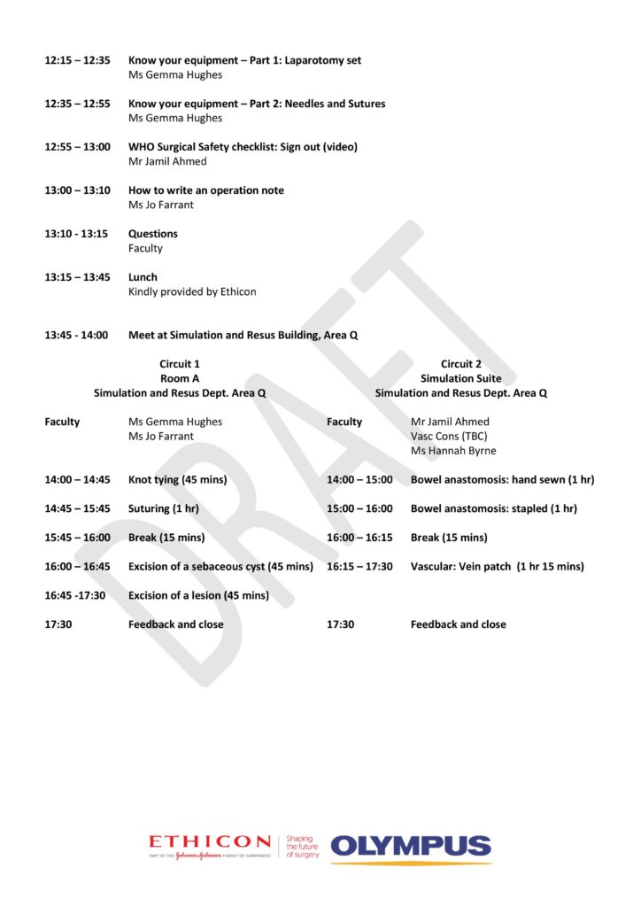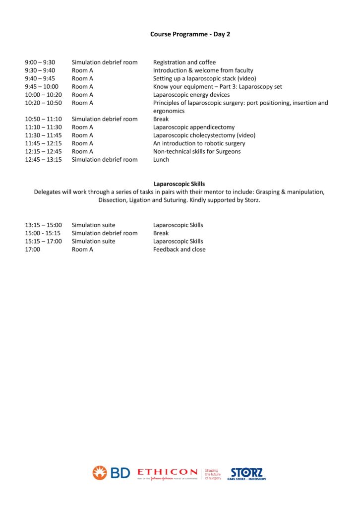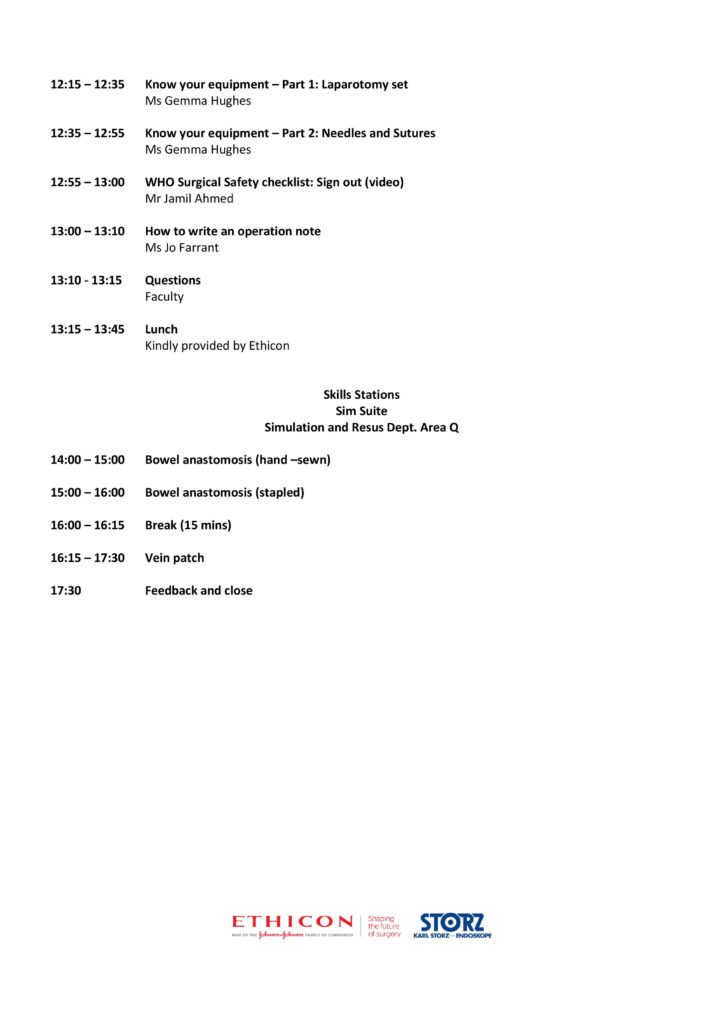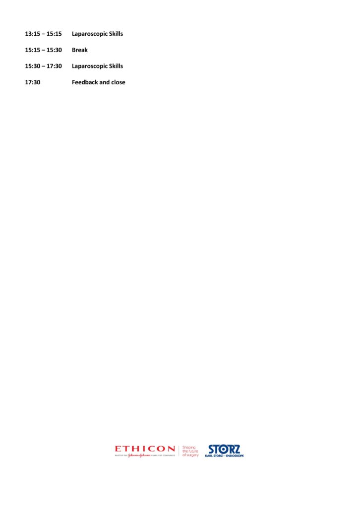 Ethicon are supporting the day and all participants will have the opportunity to use laparoscopic advanced energy and stapling devices on animal tissue models.