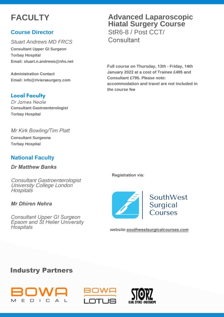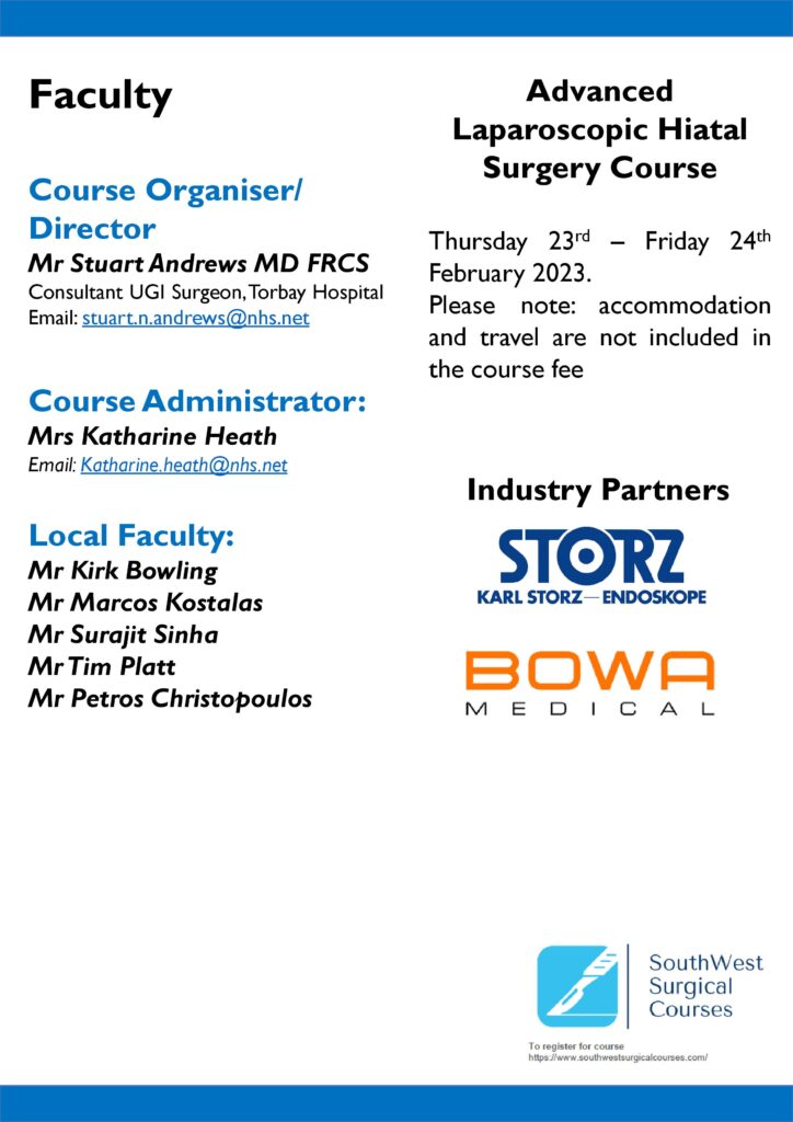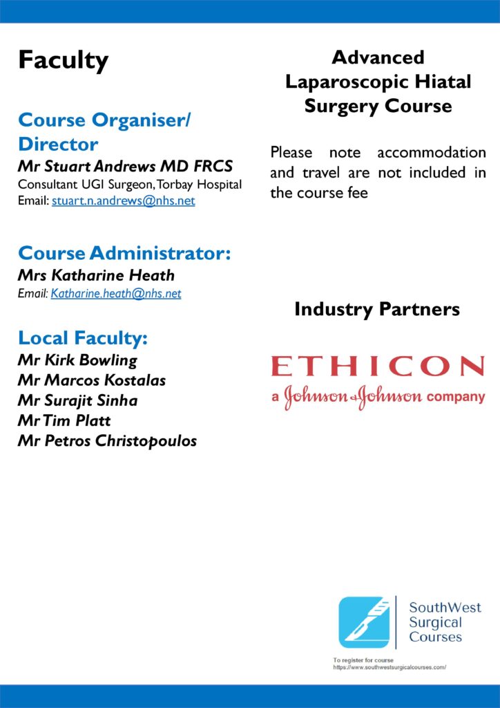 Faculty members are all specialist laparoscopic surgeons in their own field. They are all trainers in laparoscopic surgery, several holding qualifications in medical education