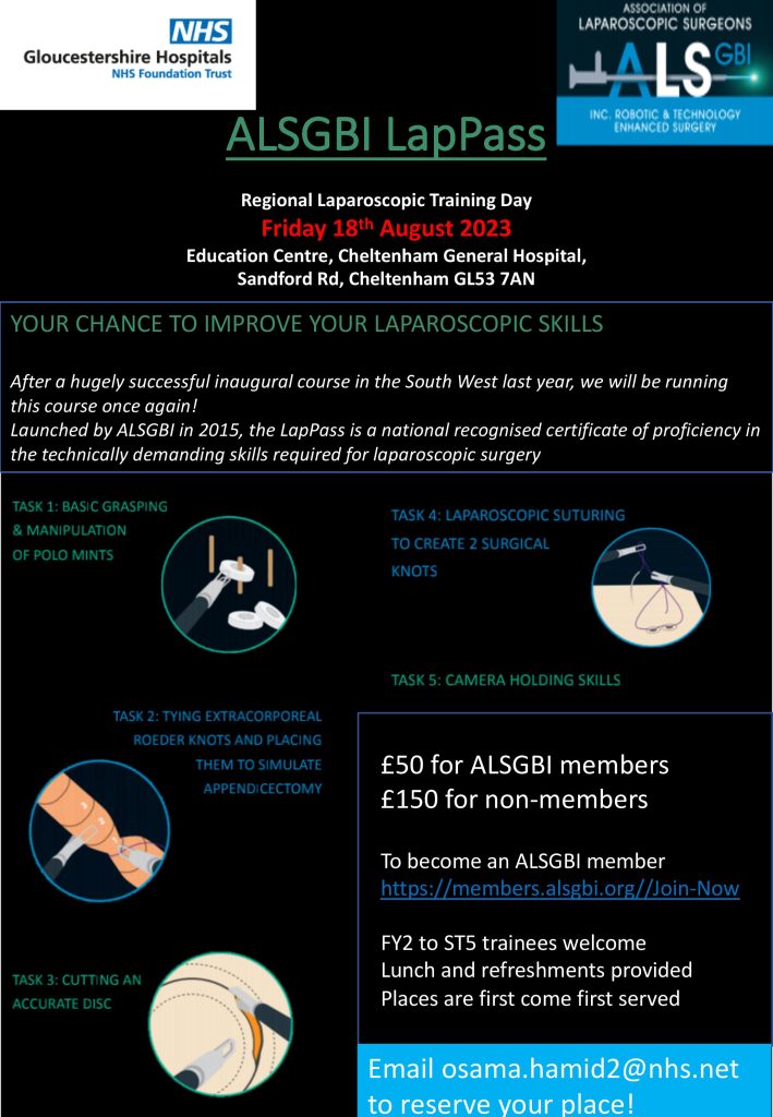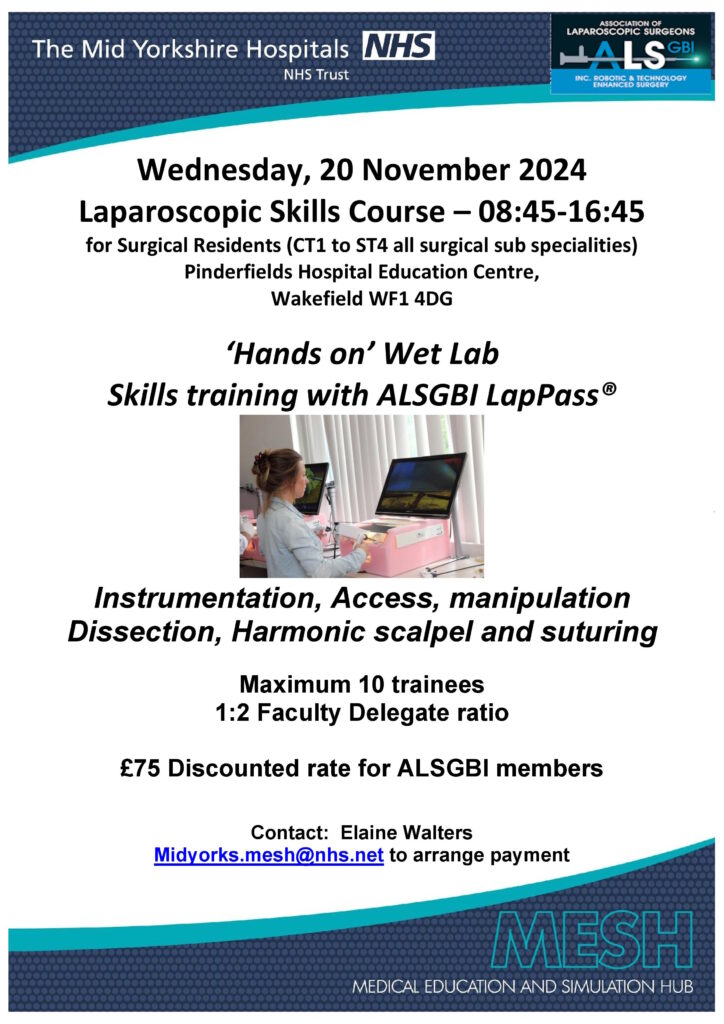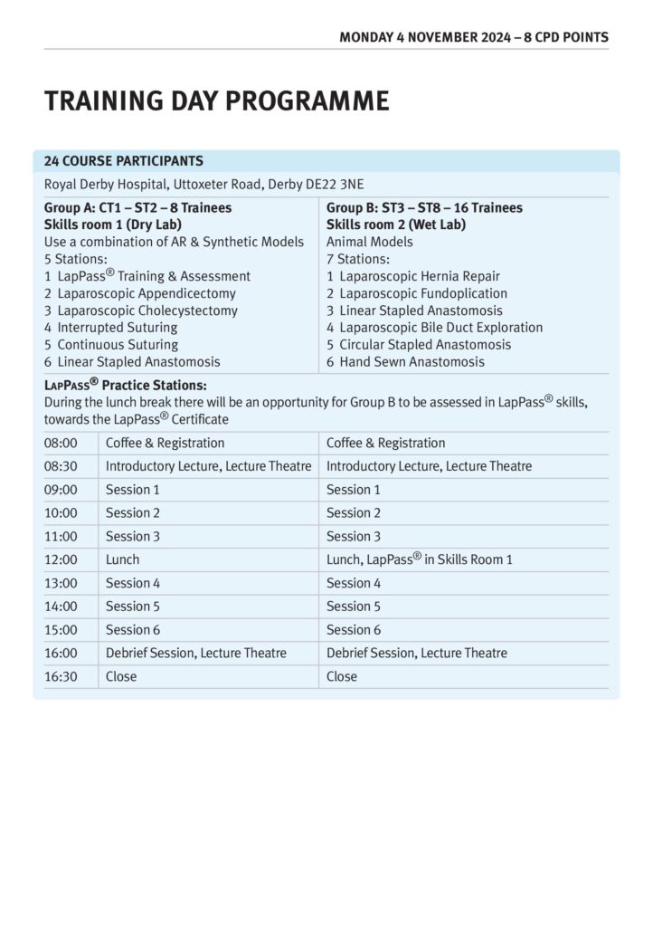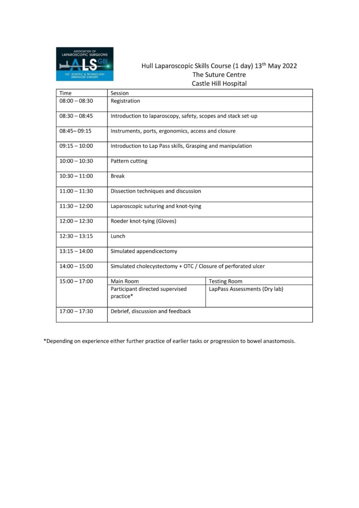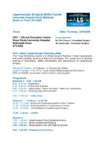 Open to ST3 and above, Staff Grades & Consultants In any speciality who wish to refine their laparoscopic suturing skills