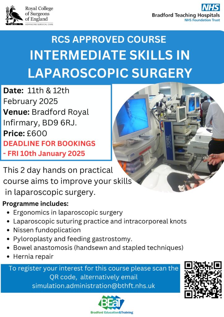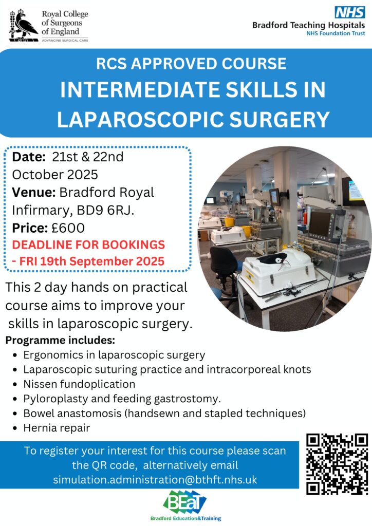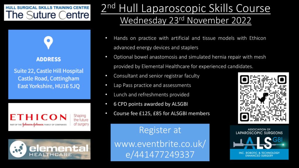 The 3rd Hull Laparoscopic course has been designed for CT1 – ST4 trainees from any surgical speciality. More junior trainees will be considered based on their experience. Please email janine.peck1@nhs.net for further details. The program is flexible and the afternoon will be tailored to accommodate individual requests.