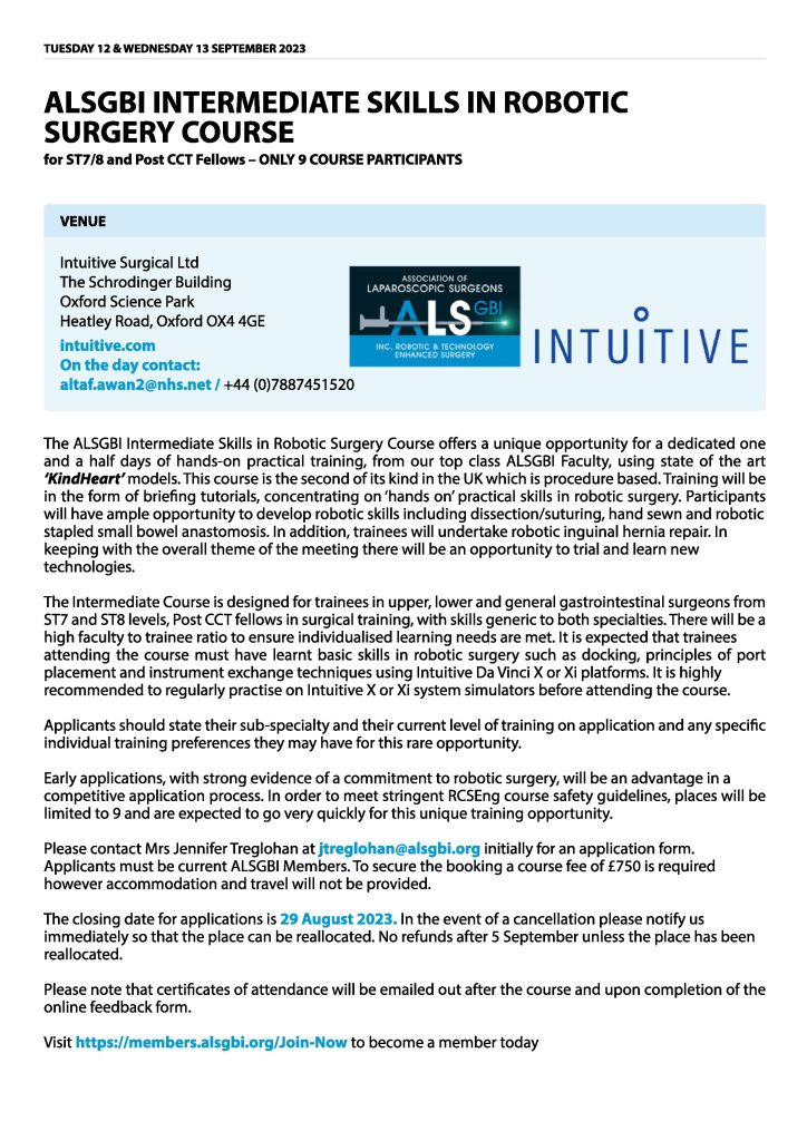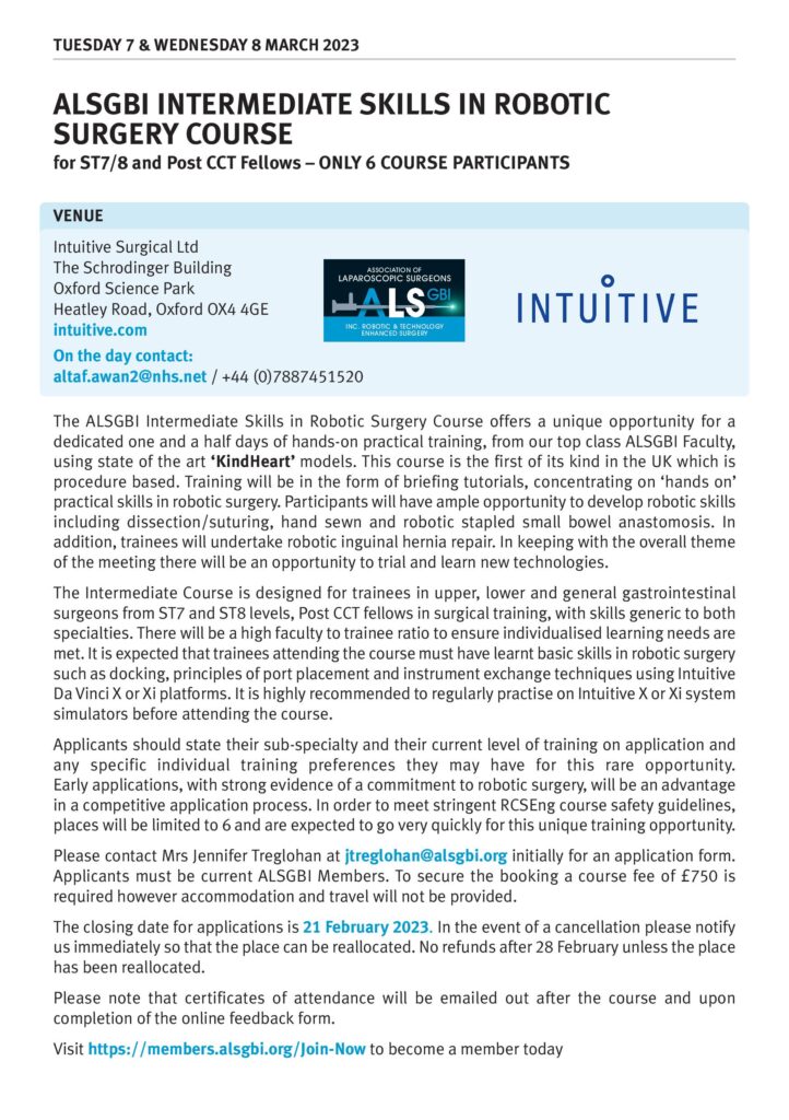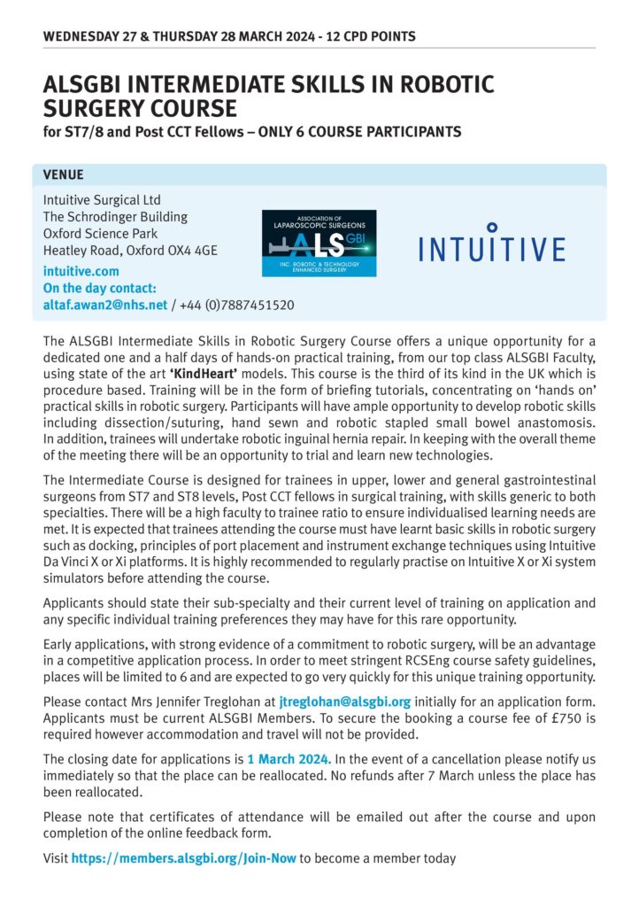 The 2nd UK COLORECTAL ROBOTIC SURGERY CONFERENCE AND CADAVERIC COURSE |