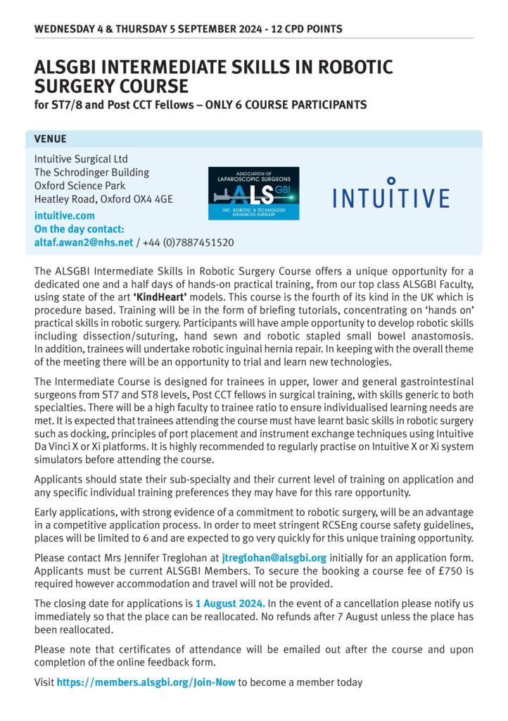 | Target delegates | Relevant to ST3 & above colorectal, upper GI & urology trainees |