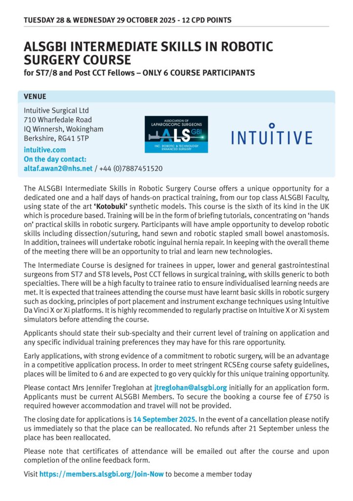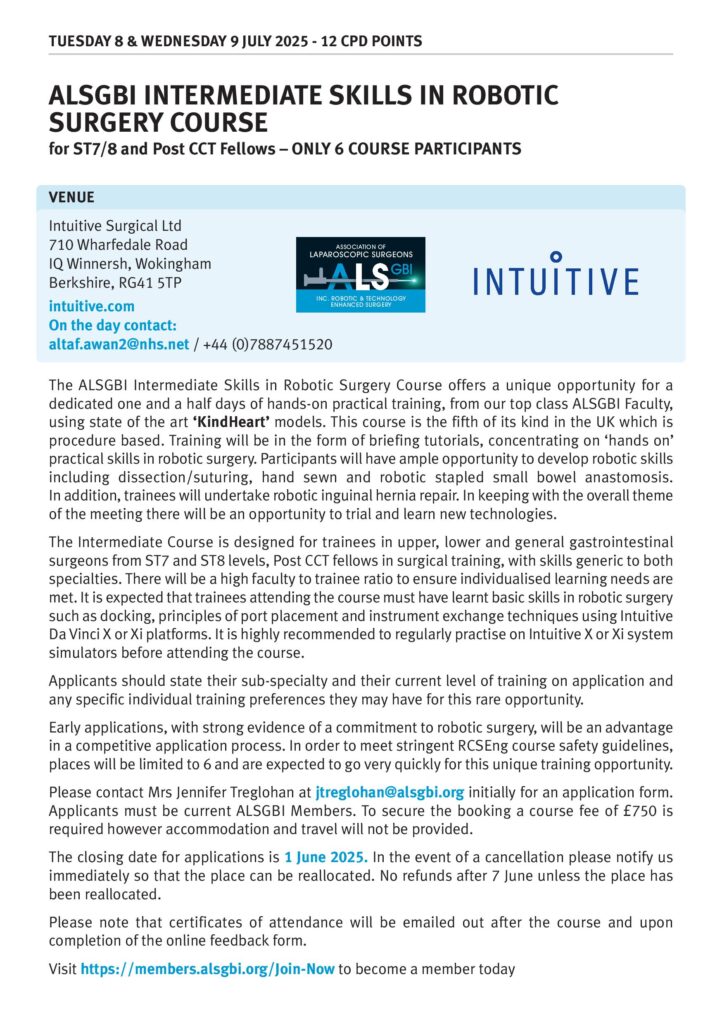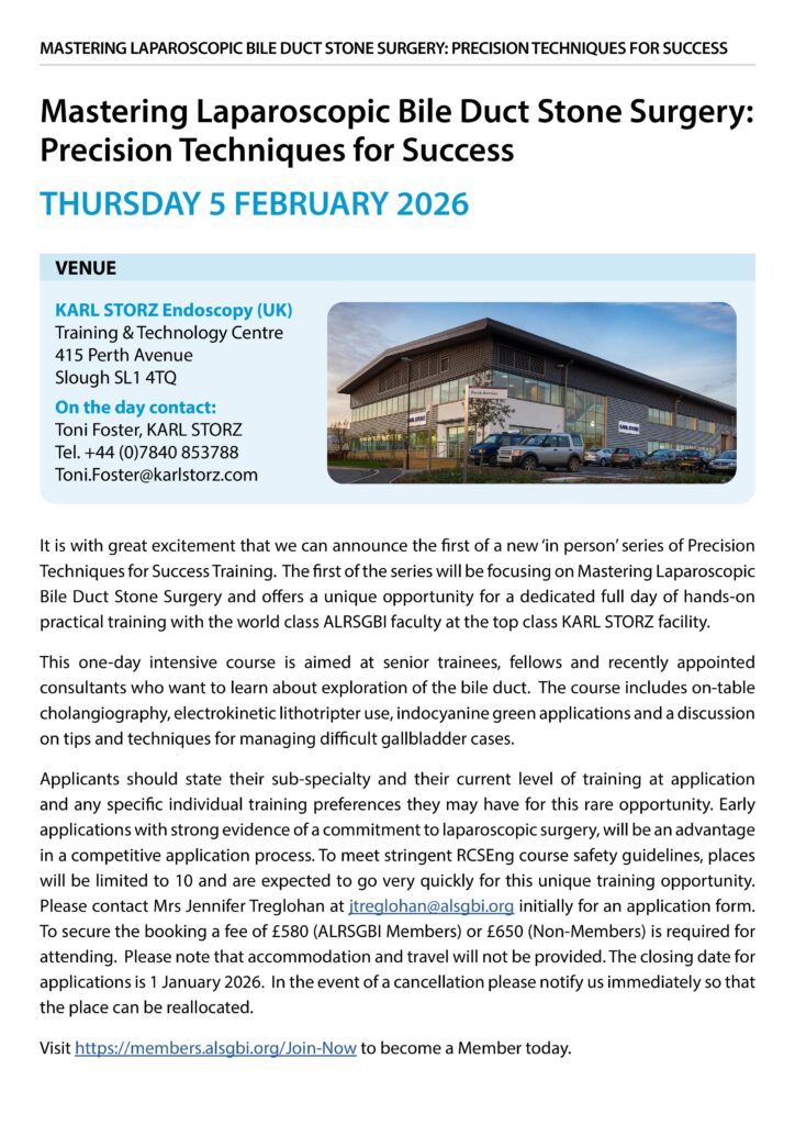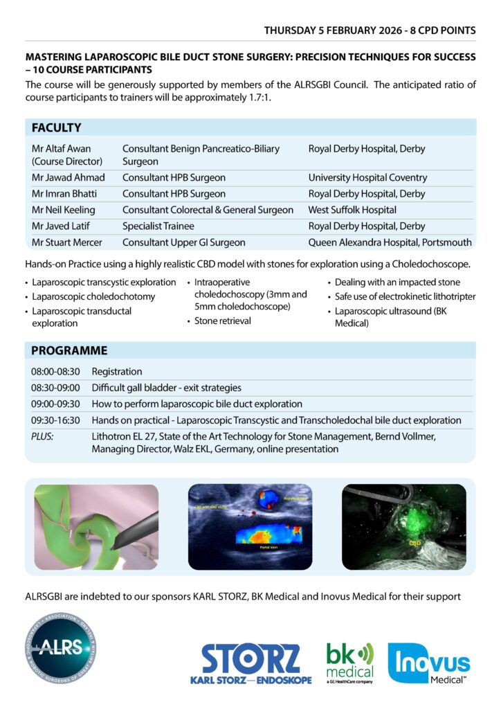 ALRSGBI Mastering Laparoscopic Bile Duct Stone Surgery course, Slough 5th February 2026 – sponsor payment page