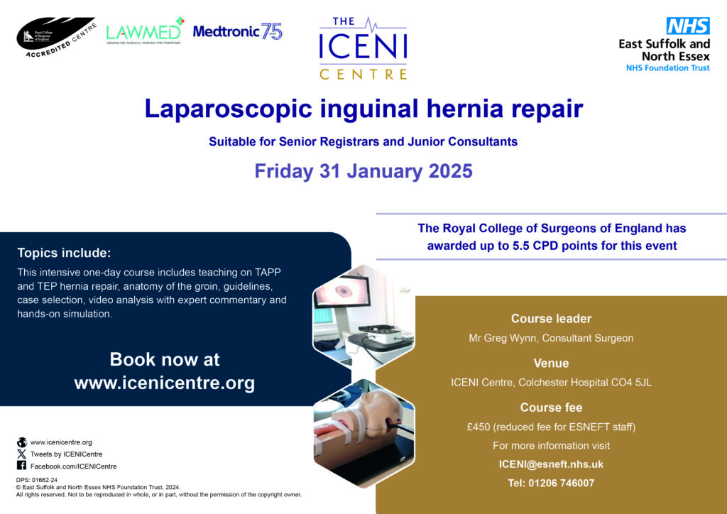 The day incorporates and encourages discussion, review of surgical experience with peers, interaction with expert surgeons on technique followed by suturing tuition and practical experience with dissection and mesh placement in our state-of-the-art laparoscopic skills lab. Features include: