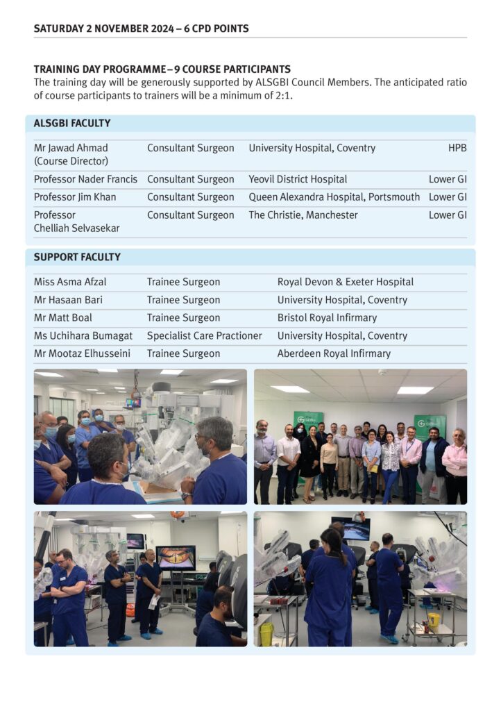 Upper GI, colorectal & urology consultant laparoscopic surgeons. Ratio of 1 faculty to 4 participants