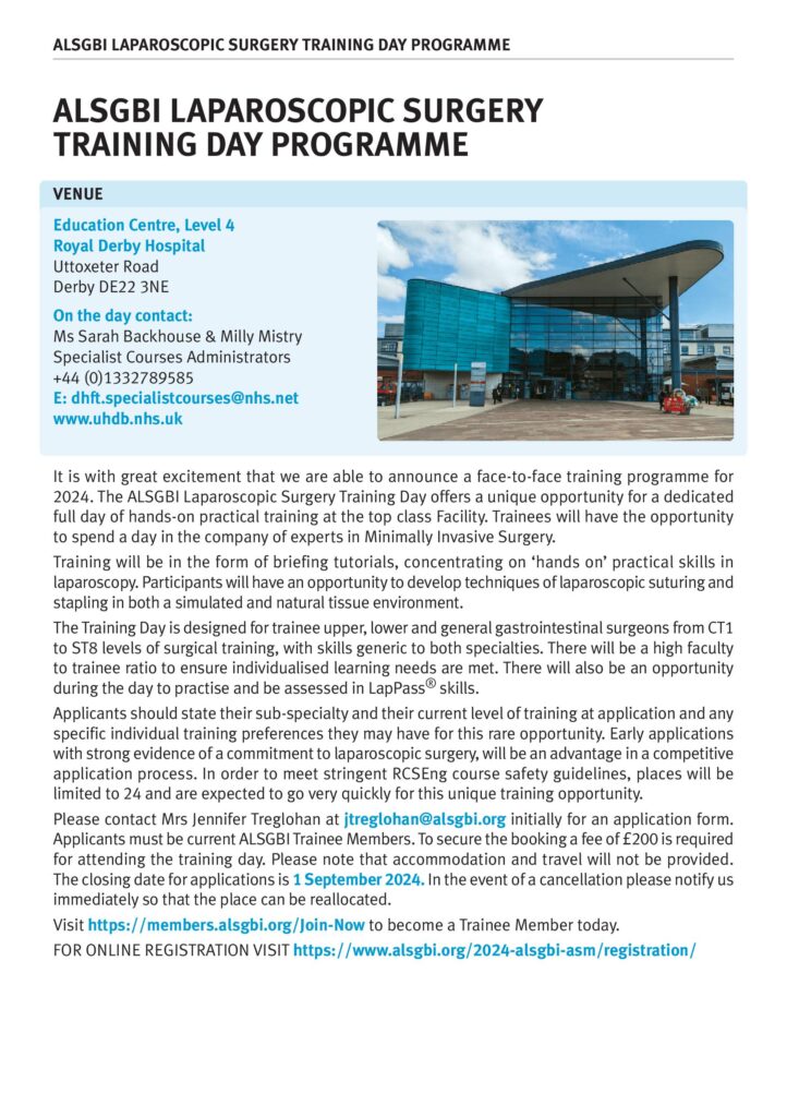 The deadline for receipt of applications is Friday 13 October 2017. The names of successful applicants will be announced at the ALSGBI Annual Scientific Meeting on Friday 10th November. For more information, click here.