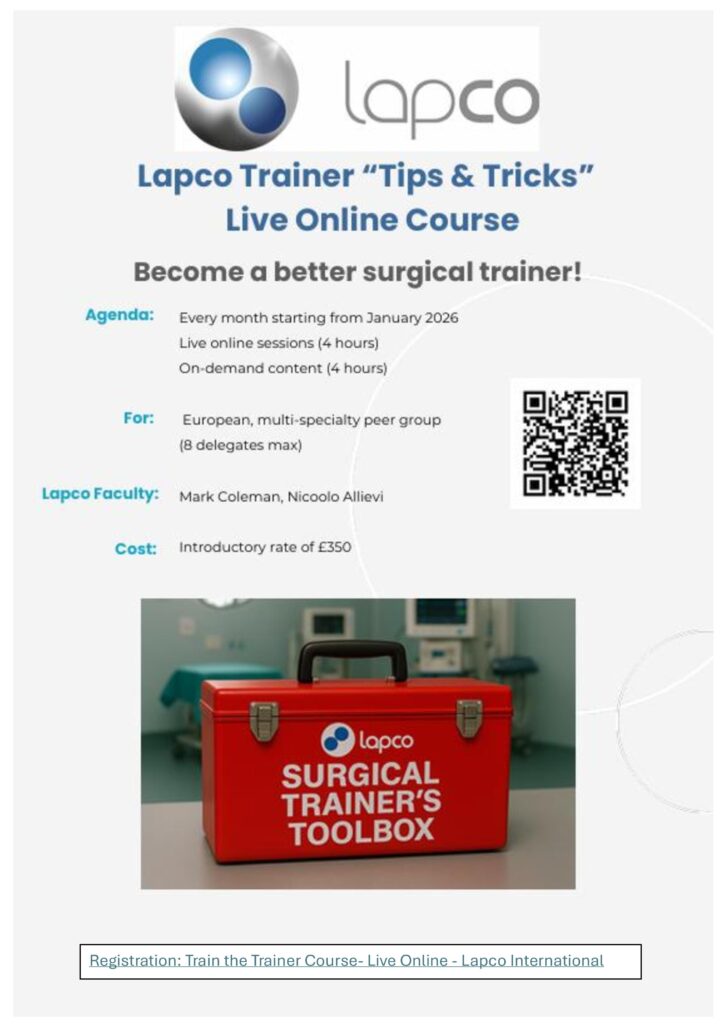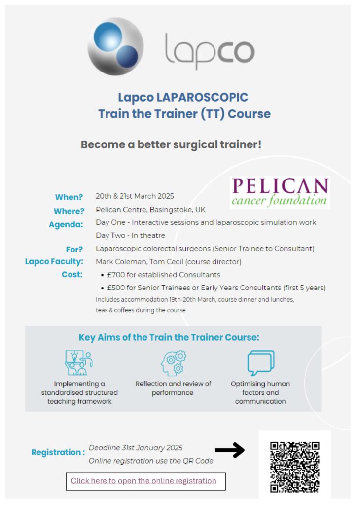 | Title of Course | Laparoscopic Colorectal Train the Trainers Course (LAPCO TT) |