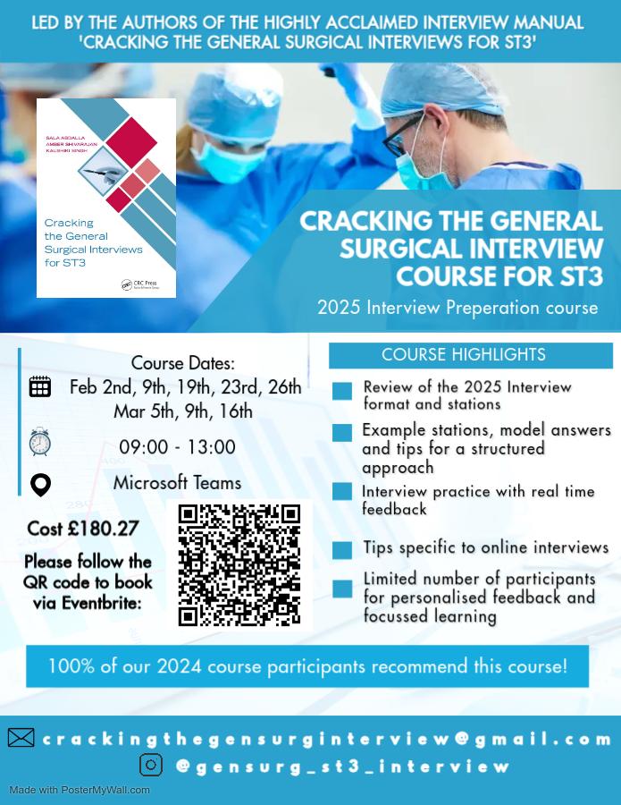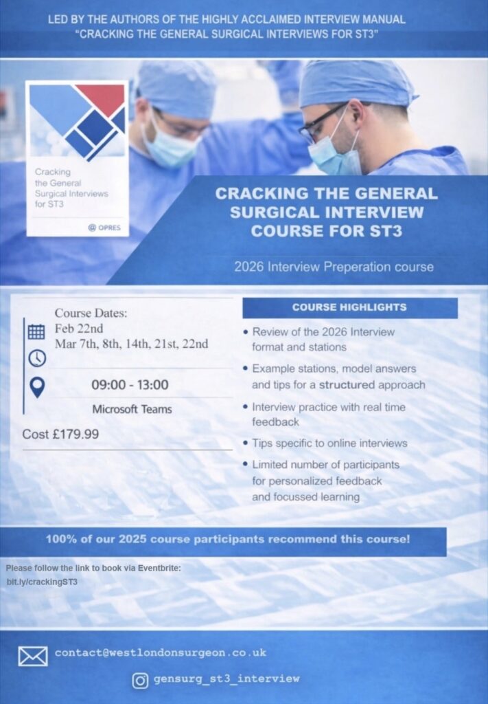 Relevant to ST3 & above colorectal, upper GI & urology trainees
