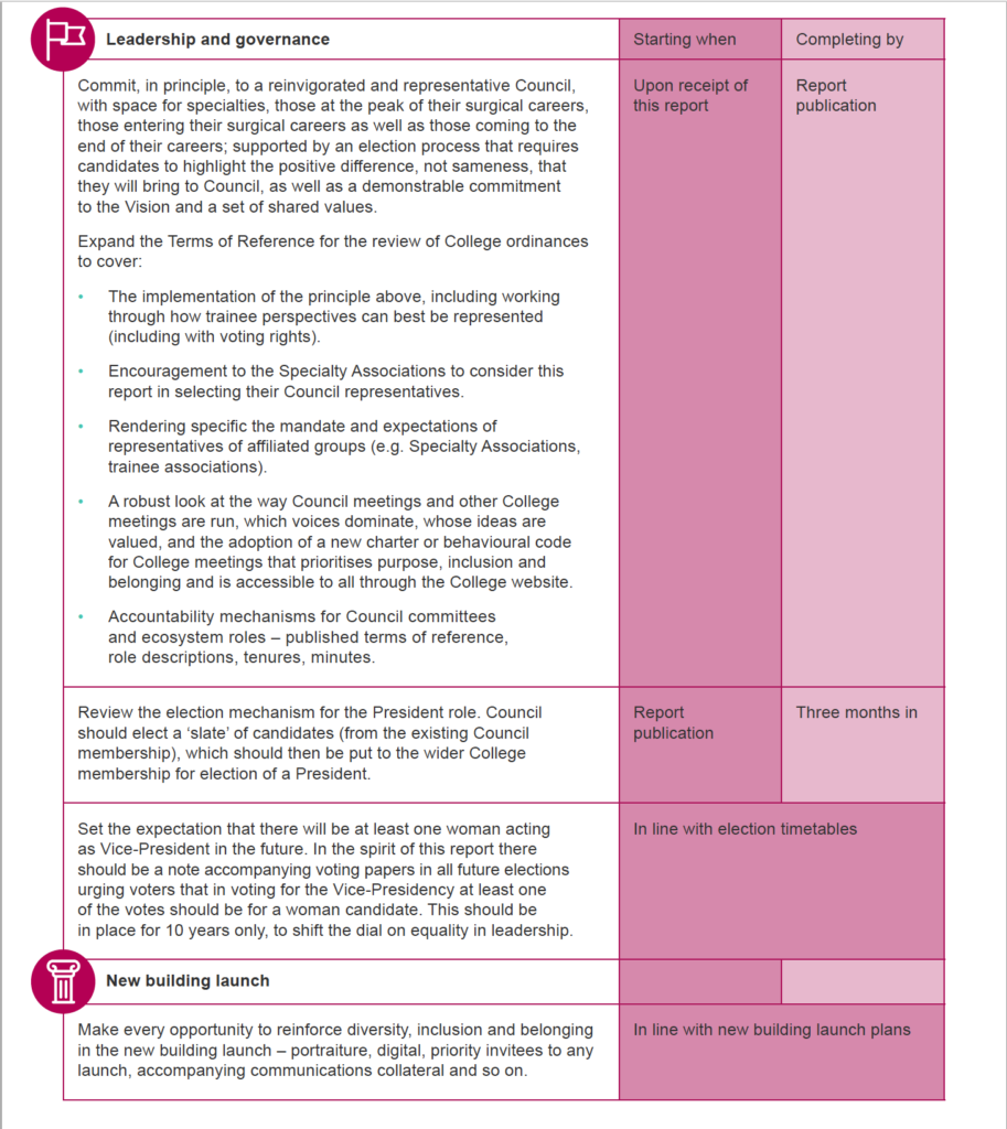 - RCS England has committed to a reform target which states that within two Presidential terms, the Leadership and Council of the College will reflect the diversity of the wider medical workforce (5-6 years).
