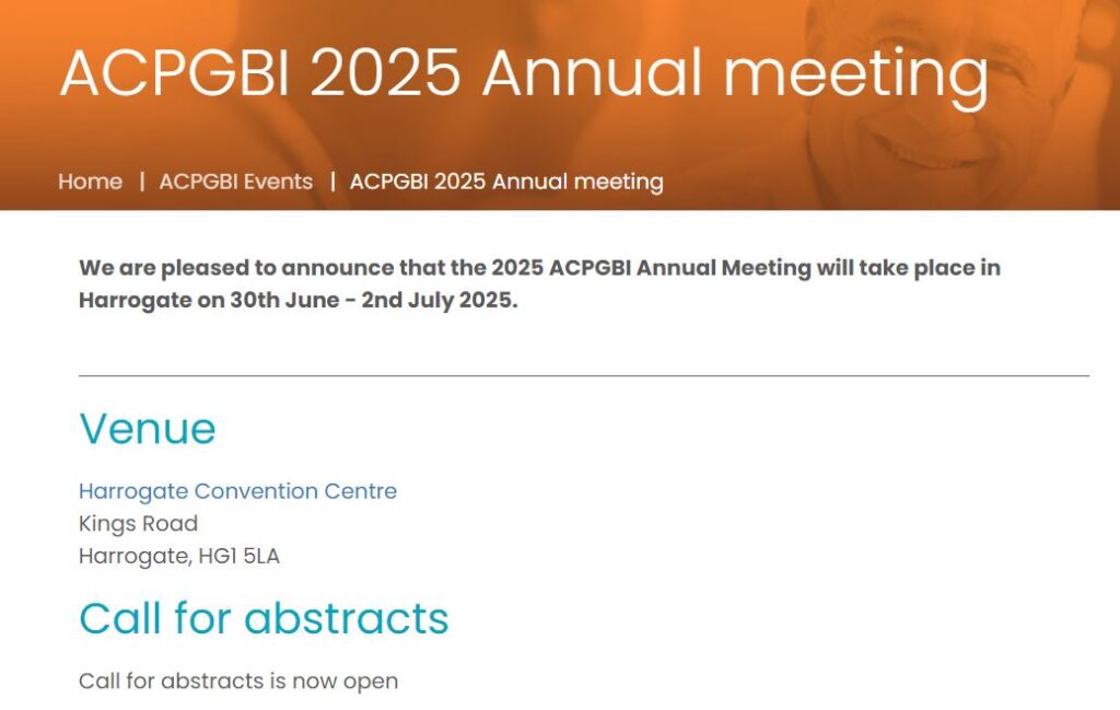 ACPGBI Annual Meeting, Harrogate – 30th June to 2nd July 2025