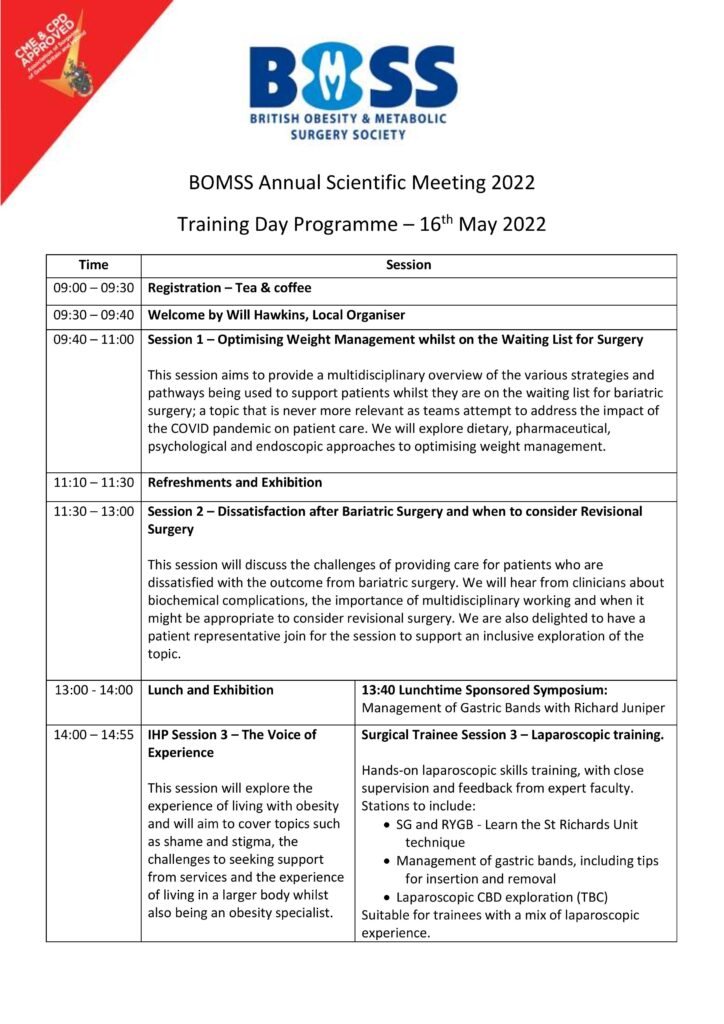 BOMSS Annual Scientific Meeting – 16th to 18th May 2022