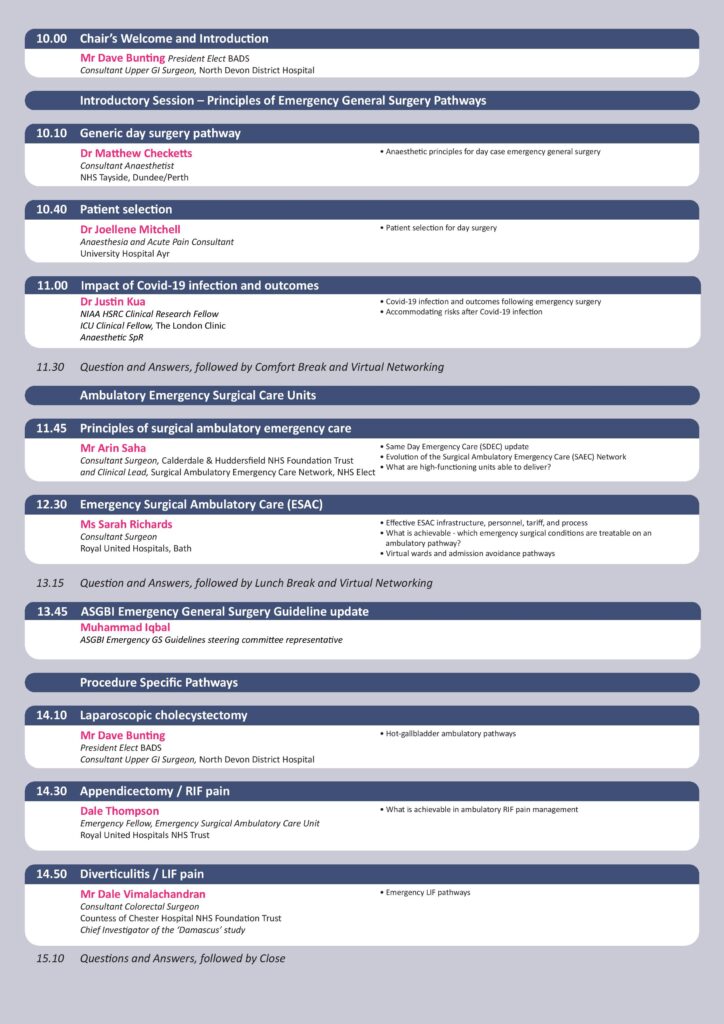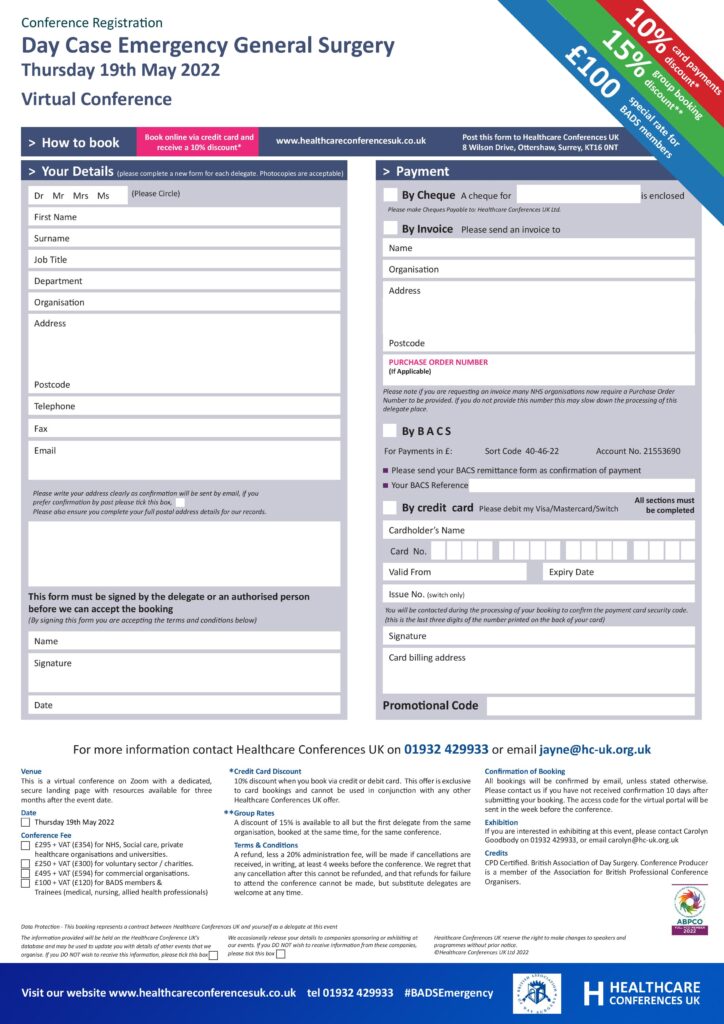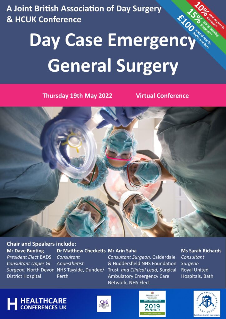 British Association of Day Surgery (BADS) Day Case Emergency General Surgery Virtual Conference – Thursday 19th May 2022