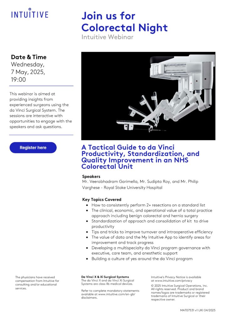 Colorectal Night: Intuitive WEBINAR – 7th May 2025 at 19:00 hours BST