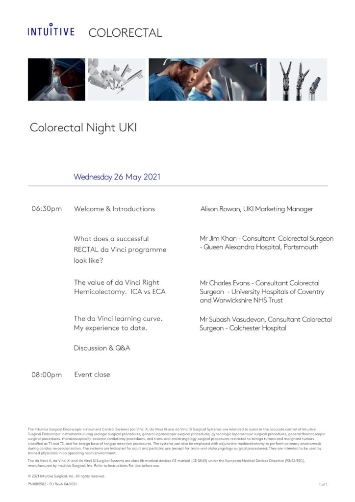 Colorectal Night Webinar – 26th May 2021 at 6:30 pm