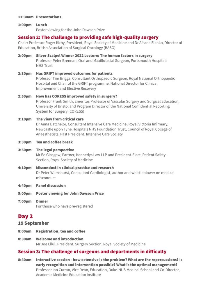 Royal Society of Medicine Current Challenges in Surgery Meeting – 18th & 19th September 2023